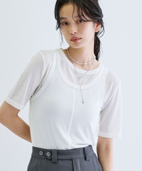 タンクトップとTシャツの絶妙なコンビネーションが新感覚のレイヤリングスタイルに。