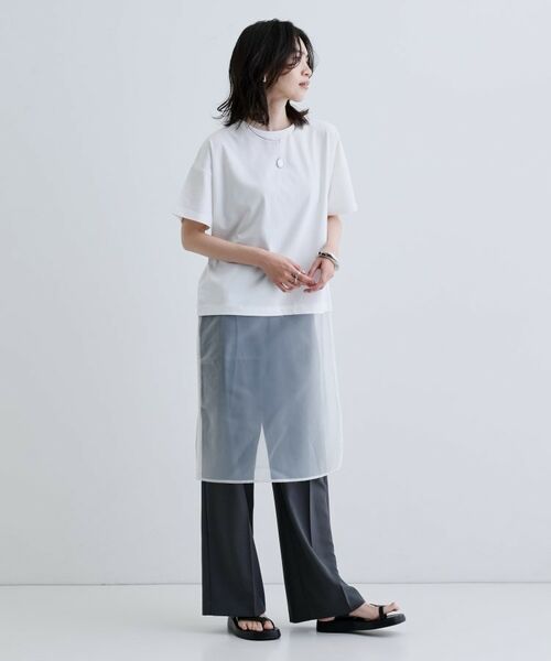 透け感のあるシアー素材が、シンプルなカットソーに奥行きを加え、さりげなくモードな印象を演出します。