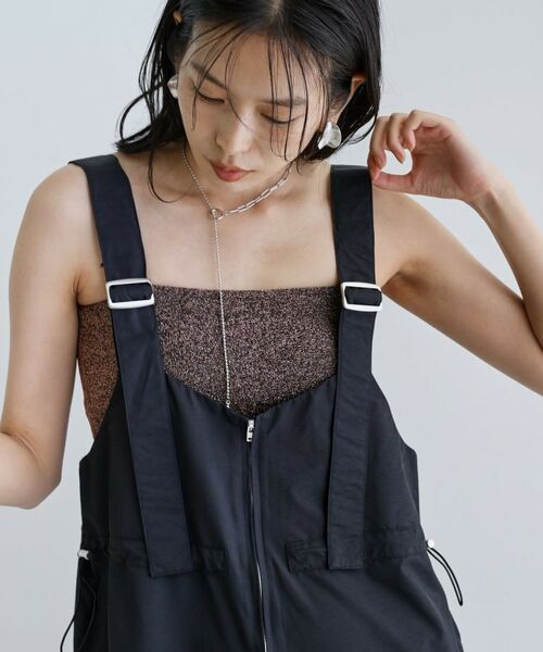 ウエストドロストのサロペットは、洗練されたシルエットが魅力。