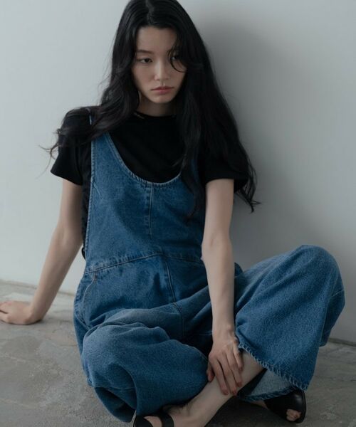 デニムサロペットは、シンプルなデザインにトレンドを取り入れた一着。