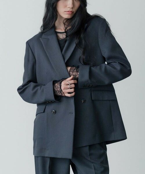 ミニマルなシルエットとダブルブレストデザインが特徴のジャケット。