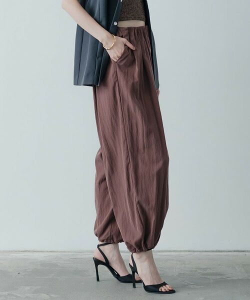 軽やかな素材感とボリューム感が魅力的なウエストギャザーパンツ。