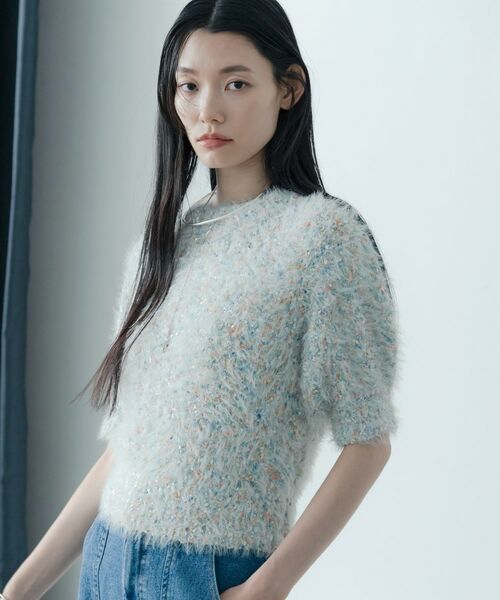 独特の色味が織り交ぜられたカラーネップのニットは、その素材感が目を惹くアイテム。