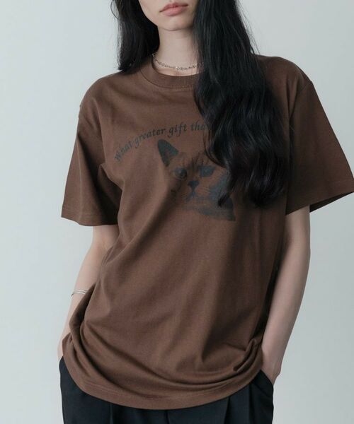 ベーシックなアウトラインにネコのプリントが施されたTシャツ。
