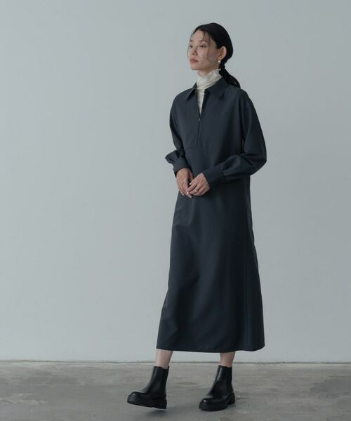 シンプルでありながら洗練された印象のジップアップワンピース。