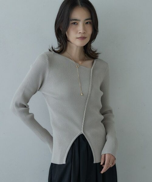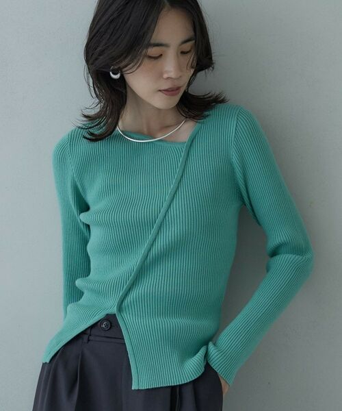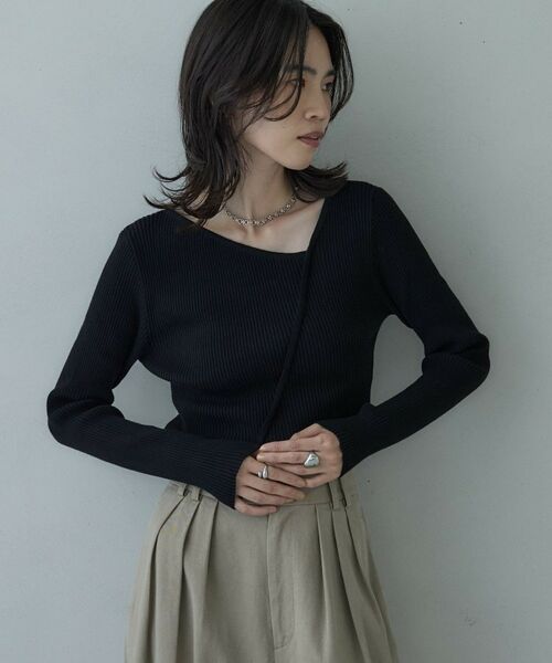リブ編みのテクスチャーが特徴的なニットトップス。
