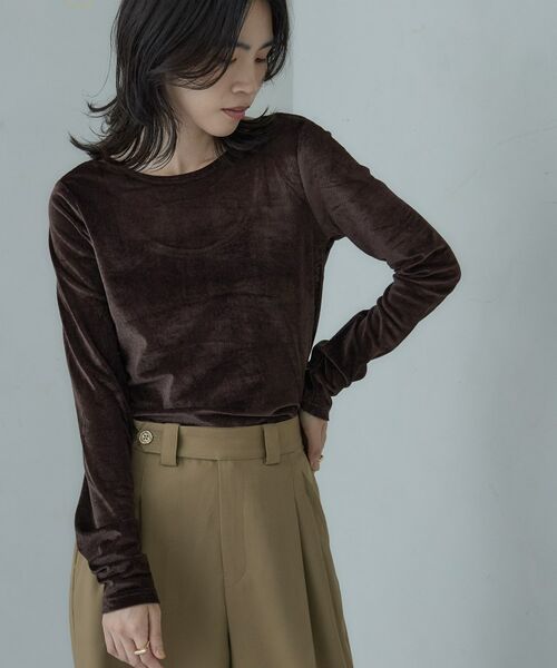 柔らかなベロア素材を使用したトップス。