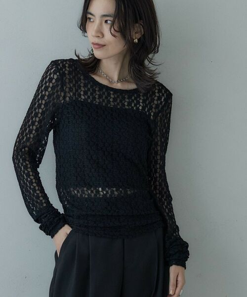 軽やかなレース素材が特徴で、通気性が良く快適な着心地。