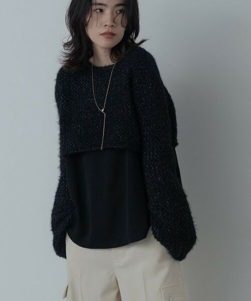 ボリューム感のあるスリーブと短めの着丈が特徴的なニット。