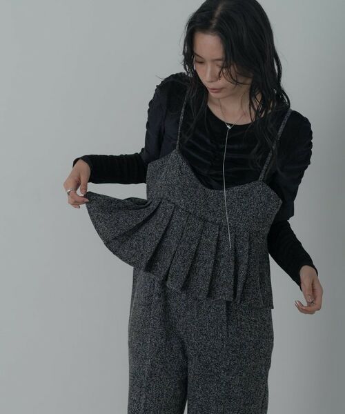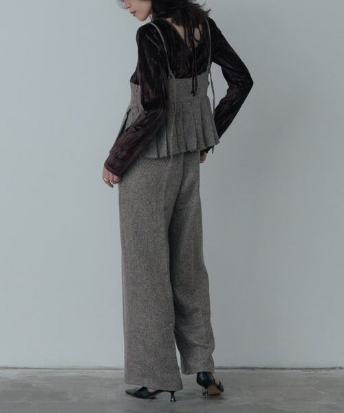 フレアディテールが施されたプリーツのペプラムスタイルから、女性らしいシルエットを演出します。