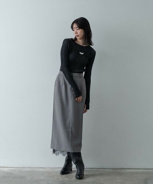 裾から出るレースがポイントになり、カジュアルにもフォーマルにもマッチします。
