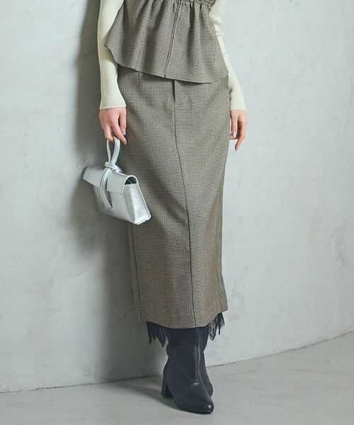 洗練されたクラシックなガンクラブチェック柄が魅力的なロングタイトスカート。