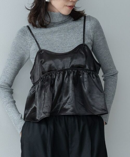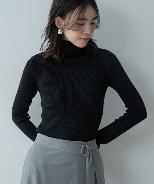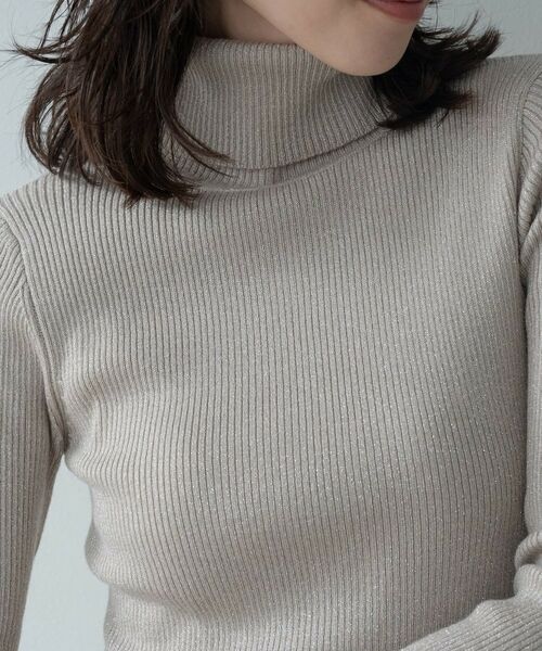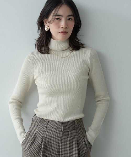 ラメを引き揃えた、今年らしいシンプルなリブのタートルニット。