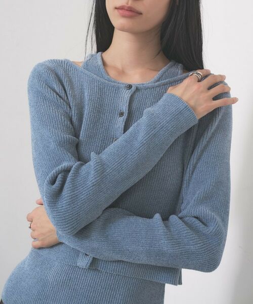 柔らかなベロアモールのニット素材は軽やかさと着心地の良さを両立。
