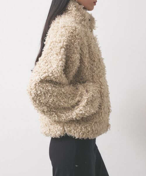プードルのような可愛いフェイクファージャケットは、一見シンプルながらも存在感◎。