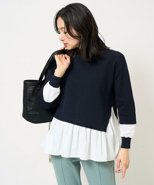 ・ニットの裾に薄地のタフタを合わせることで、一枚で重ね着風のスタイルが叶うアイテムです
