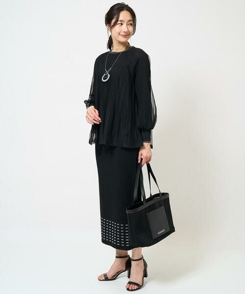 すっきりとしたIラインで、身体のラインを拾いにくいニットスカート