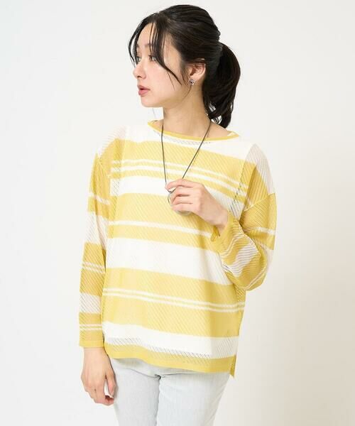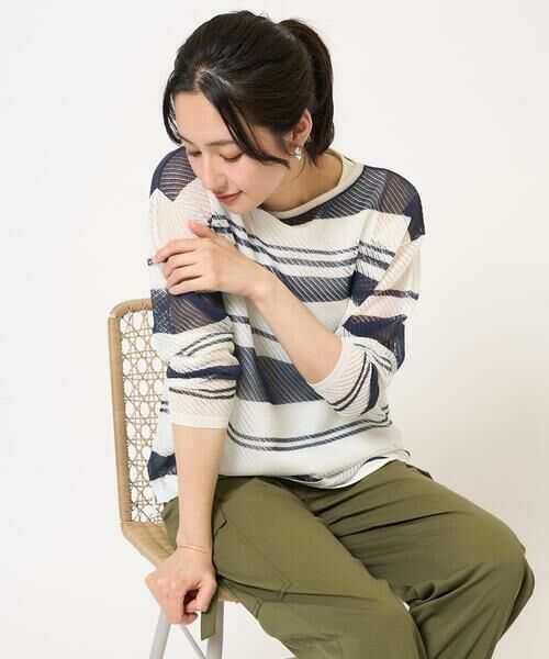 ・編目を斜めに移しバイヤスに見えるメッシュ柄をボーダーにしたシアーニットになります