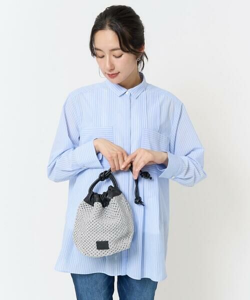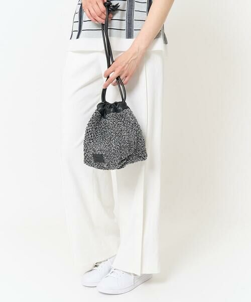 メタリックな糸をマクラメ編みした巾着バッグ。山羊革をコンビ使いした高級感のあるバッグです。長めのショルダーは肩掛けしていただけます。■関連特集・想いを「カタチ」に 〜 母の日に贈るギフト 〜
