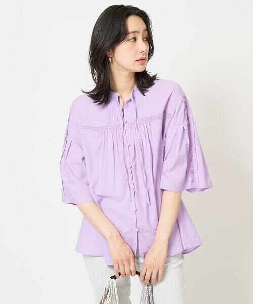 ・袖山と前後のヨーク切替部分にレースを挟み込み、エレガントな中にも大人のカジュアル感を醸し出しています