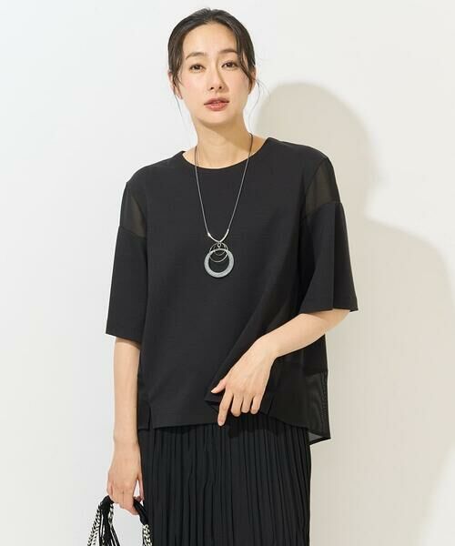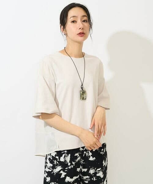 ・さらりとしたコットン混のポンチ素材とシアーなカラミのコンビネーションプルオーバー