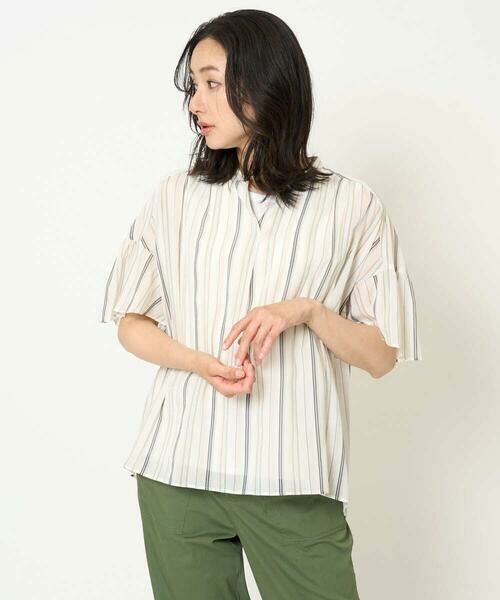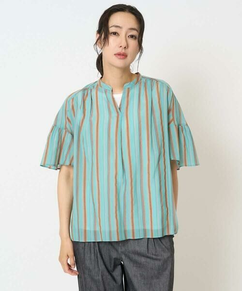 GEORGES RECH / ジョルジュ・レッシュ シャツ・ブラウス | [接触冷感]ランダムストライプフレアスリーブブラウス(グリーン系)