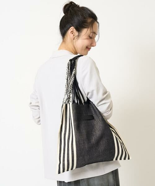 ■デザイン・手織りの生地を手縫いで縫製したハンドメイドのハンモックバッグです・カゴバッグのように夏場に軽く持っていただけるアイテム・多色使いで、コーディネートのアクセントにおすすめです