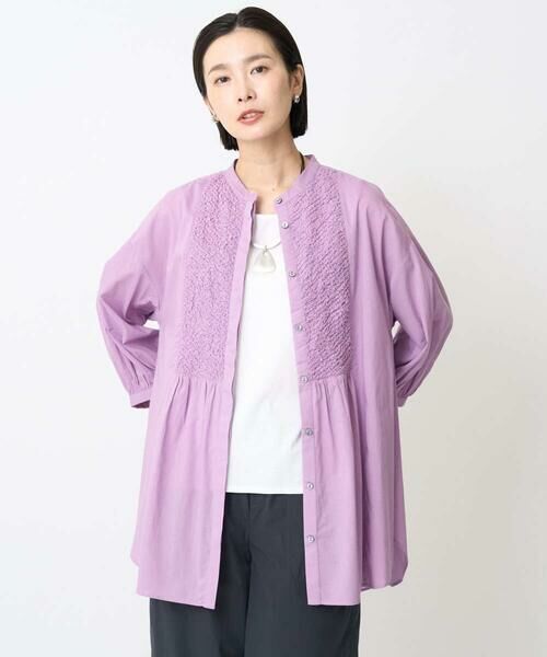 ・インドならではのテクニックを施したミドルロング丈の7分袖ブラウス