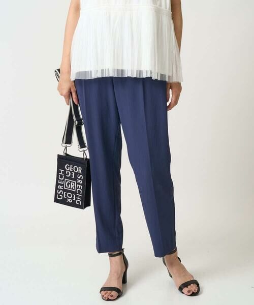 ・裾に向かって細くなるテーパードパンツはセンタープレス入りで脚のラインをすっきりと見せてくれ、スタイリッシュに着こなせるアイテムです