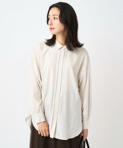 ・シャツ本来のクールな印象は残しつつ、小さめの襟で女性らしくモード感のあるブラウスです