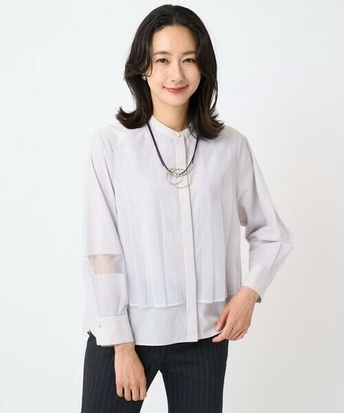 ・同色系のチュールとシャツ地をレイヤードした1枚で着映えるブラウスです