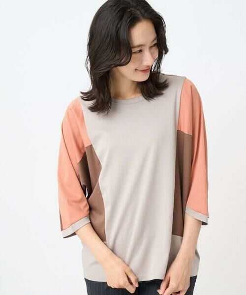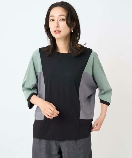 ・柔らかな肌触りの良いジャージーを3色配色使いにしたモダンな印象の7分袖プルオーバー