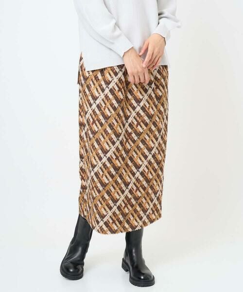 GEORGES RECH / ジョルジュ・レッシュ ロング・マキシ丈スカート | [日本製]フェザーナロータイトチェックスカート(オレンジ系)