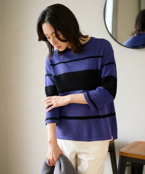 GEORGES RECH / ジョルジュ・レッシュ ニット・セーター | スラブボーダー8分袖ニット(ブルー系)