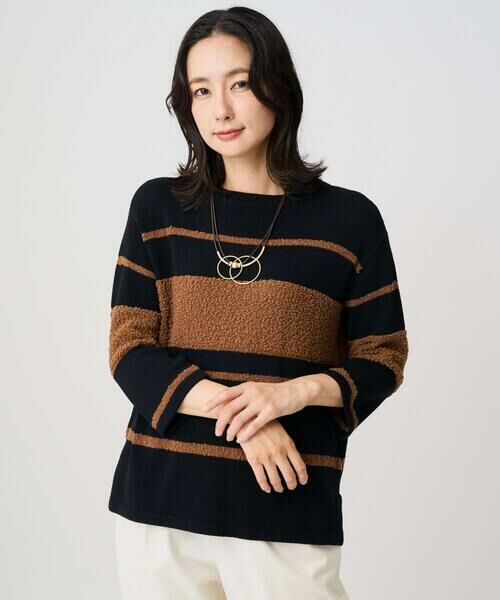 ・カジュアルになりがちなボーダー柄ですが、不規則なラインの配置でモード感をプラスしてくれる大人のボーダーニットに仕上がっています