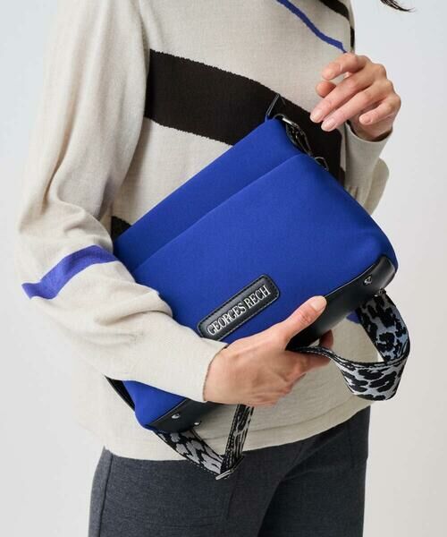 ・コーディネートのアクセントになるレオパード柄のジャガードテープを使用したショルダーもポイントです
