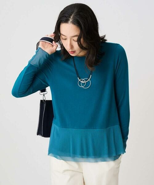 ・トレンド感のあるショート丈のトップス合わせにおすすめの裾フレアチュール切替のプルオーパー