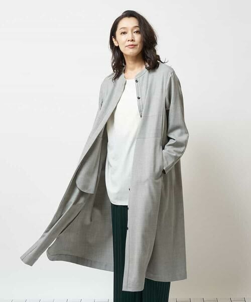 羽織り兼用で着用できるクールなシャツワンピース。前見頃にはスタイルバランス良く見える2本切り替え・スレンダーな印象のAラインシルエットです。後ろは動きやすいドルマンスリーブ。後ろ襟付けのVカッティング・黒い釦と配色ステッチをアクセントにした格好良くモードなディテール使いで、ハンサムウーマンなスタイルを叶える1枚。裏地なし。シームポケット付き・切り替えからポケットを吊り仕様にしているので、裏で袋布が垂れさがったりせずシルエットに響かない仕様になっています。 ※屋外での撮影は色味が多少異なる場合がございます。商品の色味は、スタジオ撮影の画像をご参照ください。