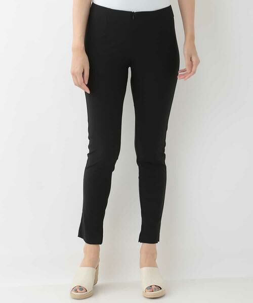 伸縮性に優れ、動きにストレスを感じない機能性パンツ。さらっと滑らかな肌触りが夏に嬉しい接触冷感と速乾性に優れ、快適な穿き心地を提案します。ベルトレスのすっきりとしたウエストやコンシールファスナーを使用したごわつきのないデザインになっているので、レギンス感覚で穿いていただけるのも嬉しいポイントです。トレンドのテレコスリエットも今年らしく、キレイめコーデにもぴったりな優秀な一本です。model:H170 B81 W58 H87 着用サイズ:M