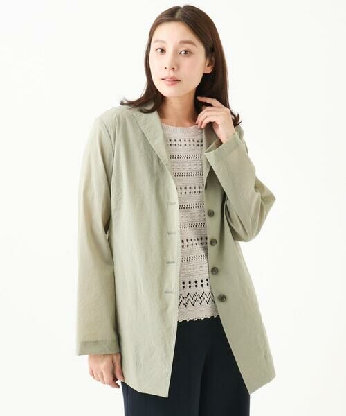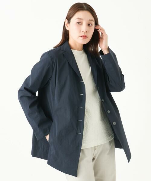 マットな表情でタウンにもカジュアルにも合わせやすい素材のジャケットです。軽くて上品なジャケットは、旅先にも重宝します。使いやすいカラーバリエーションで、合わせるボトムは、パンツでもスカートでもバランスよくお楽しみいただけます。