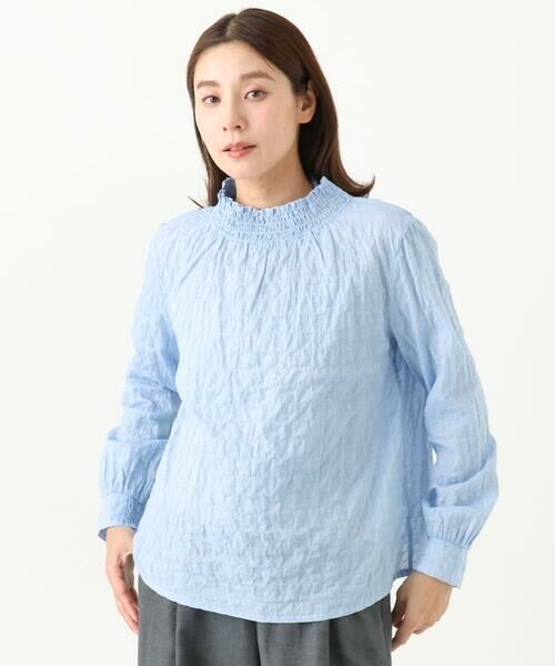 肌心地のよい柔らかなタッチのシャンブレープルオーバーブラウス