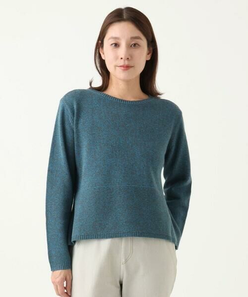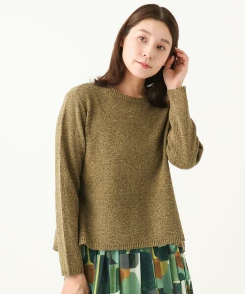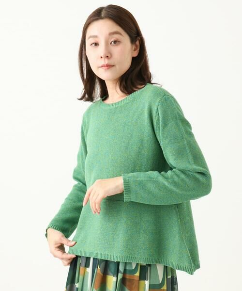 2色の糸を撚り合わせてミックスカラーを表現した、ジャンニロならではのニットプルオーバーです。ウエスト切替部分で編地の表裏を切替ているのがデザインポイント。Aラインのようなソフトで柔らかい印象のシルエットに仕上がっています。