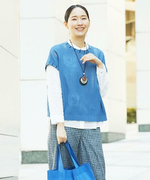 14ゲージのハイゲージニットベストは、さりげない花柄のジャガードが可愛らしい、春先のレイヤードスタイルにオススメな逸品です。襟ぐりと袖ぐりには、配色使いすることでアクセントに。アウターを着てもスッキリ着られるほど良い肉感も◎。トレンドのシアー感がポイントです。