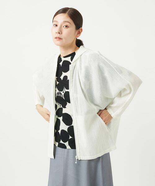 ジャンニロ定番のパーカーデザインにコットン楊柳生地をのせて作りました。ラグランスリーブにたっぷりとしたシルエットで、着脱が楽な前開きジップアップ仕様に。小さめのフードと、コットン楊柳の生地感が大人のカジュアルスタイルを演出します。