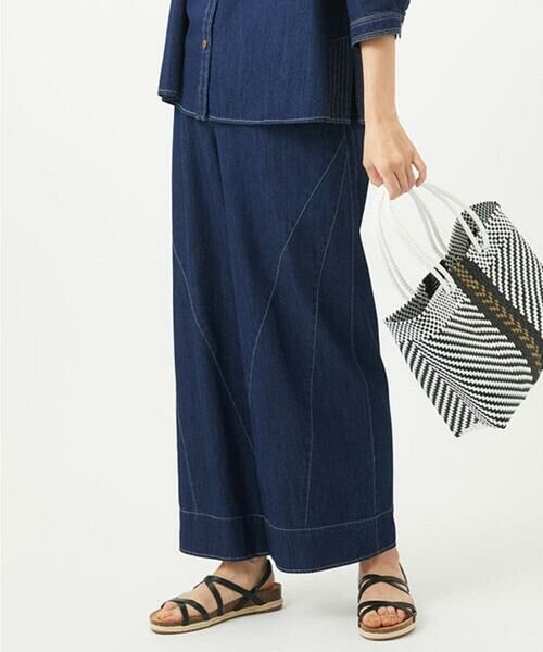 配色ステッチの利いた柔らかデニムワイドパンツ