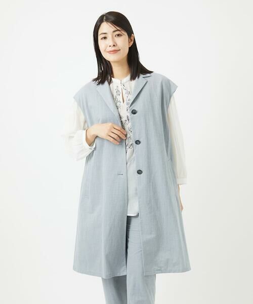 インナーやボトムの合わせ方次第で、幅広い場面で使用いただけるアイテムです。前を開けてさらりと羽織り、カジュアルに普段使いしていただくのも、同素材のパンツ[NGLGA30250]と合わせてお仕事着やオケージョンスタイルにお使いいただくものおすすめです。