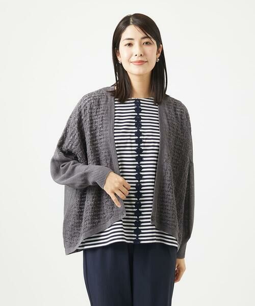 羽織るだけで様になる透かし柄リネン混カーディガン
