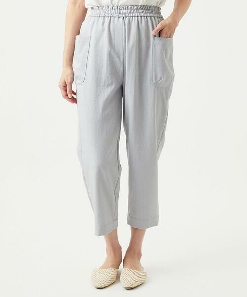 トップスは合わせを選ばない使いやすいデザインのパンツです。短めの丈なのでサンダル、ハイカットなど、足元のおしゃれも楽しんでいただけます。カットソーを前だけインしてポケットデザインを良く見せるスタイリングもおすすめ。