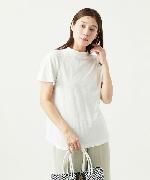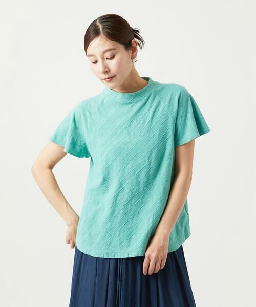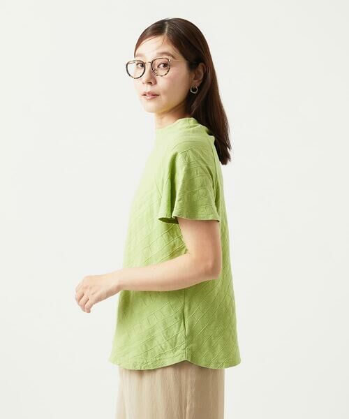 定番の綿100%素材を使用したジャージー素材です。バイアス柄に編地の違う柄を入れて、より立体的に柄を表現したジャガード生地です。製品染めをすることで、微妙な表情の質感があり、色目もナチュラルに仕上げた素材です。手洗い可能なイージーケア性もポイントです。
