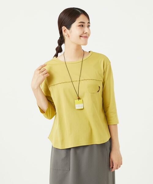 ステッチをよく見るとコーヒー豆が並んでいるかの様な特殊なステッチ刺繍をいれたデザインカットソーです。ポケットもコーヒーカップに見立てた、遊び心溢れるデザインに仕上げました。裾はラウンドヘムでボトムアウトしてもバランスがとりやすく、レイヤードもしやすいシンプルなクルーネックデザインです。